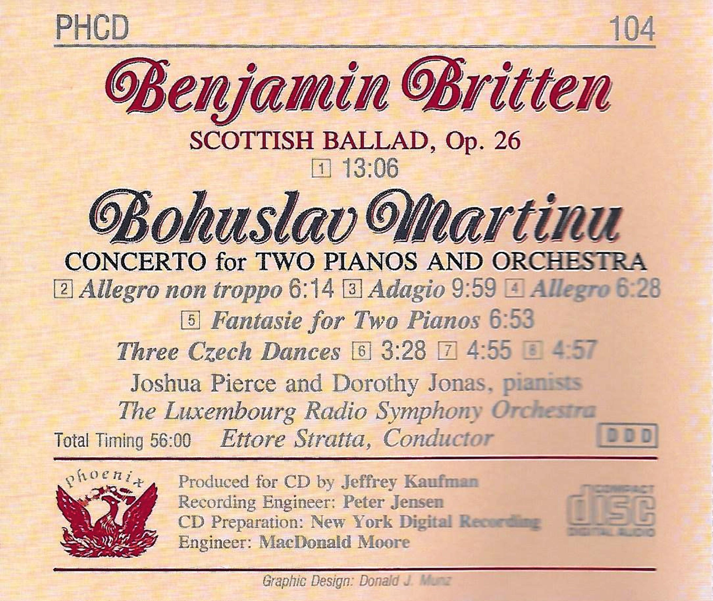 The “Scottish Ballad” is one of Britten’s early works, preceding the lone “Concerto for Piano and Orchestra” by about four years. Written in 1941 while the young composer was staying in Califronia, it received its premiere performance on November 28 in Cincinnati. For several years the work was included in the repertoire of Clifford Curzon and Britten when performing as a duo-pianist team. Featuring brilliantly written solo parts, the “Ballad” is in one movement, divided into three smaller sections. A whipcracking version of the Highland reel in which the pianos and orchestra try to outdo and outfun each other in virtuosity concludes the work.