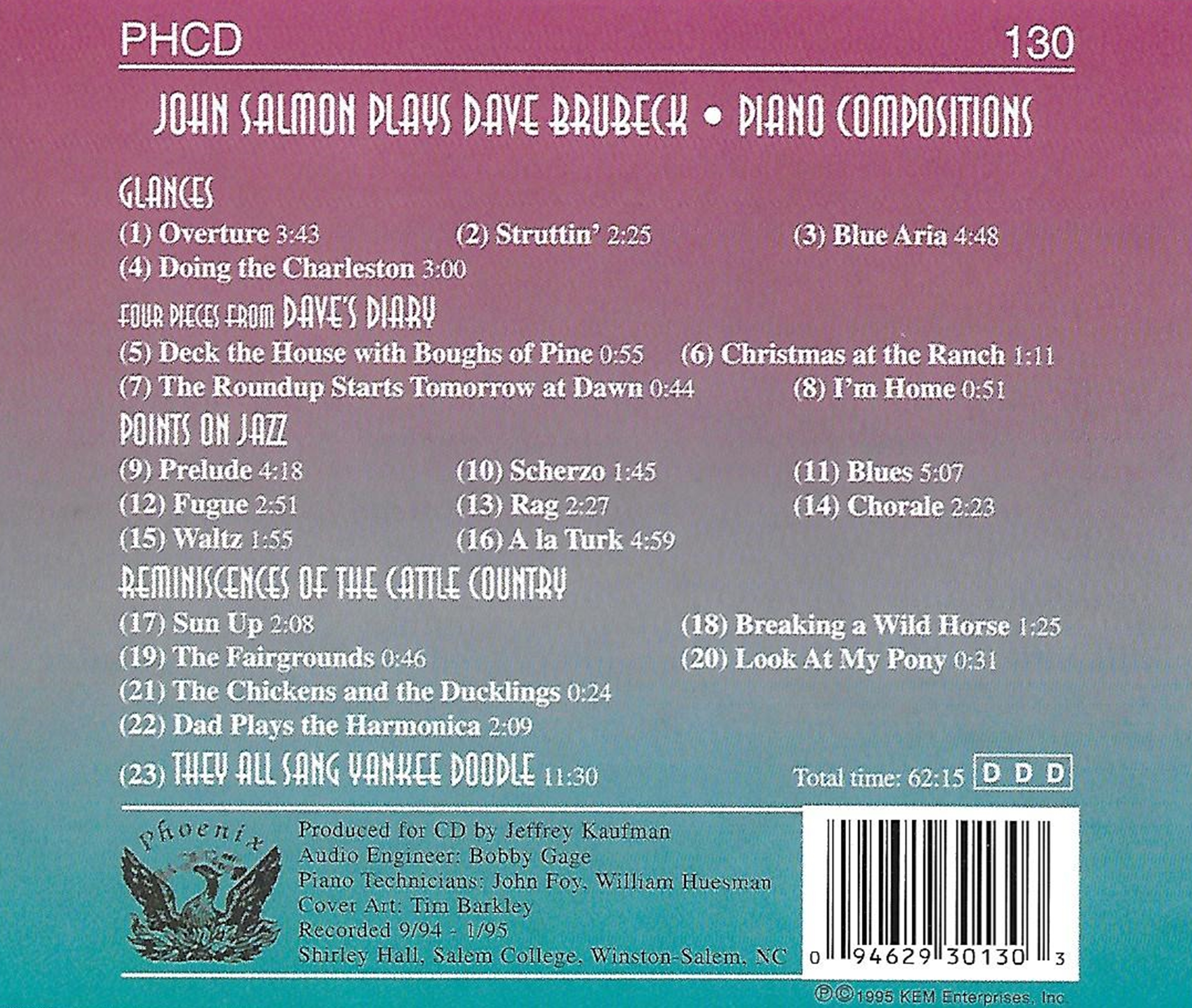 PHCD 130 John Salmon Plays Dave Brubeck Piano Compositions