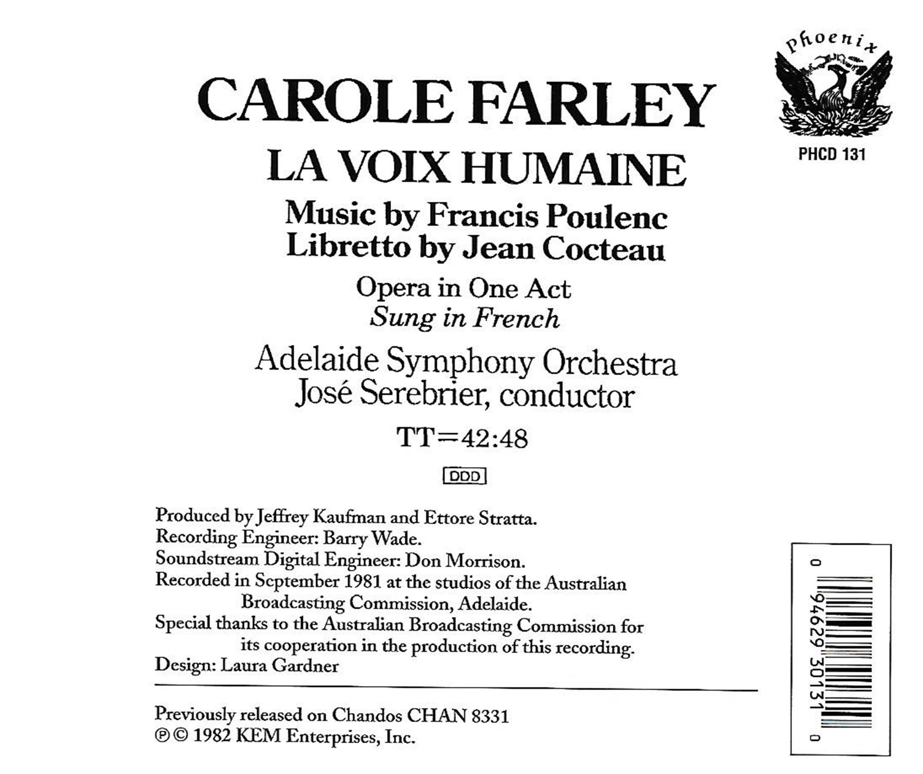 The obvious precedent would be Schoenberg’s Erwartung, also a dramatic monodrama for solo soprano. However, there are hardly two more different works. Schoenberg’s lyric, expressionist work is worlds apart from Poulenc’s transparent, realistic vision. The common factor is the enormous difficulty for a single actress-singer to support the lone drama on an empty stage.